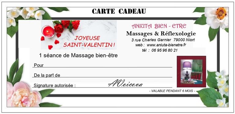VOTRE CARTE CADEAU BIEN ETRE SAINT -VALENTIN